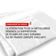 La Fédération FO de la Métallurgie dénonce la suppression de 95 emplois chez GARANKA Île-de-France (Groupe Vaillant)
