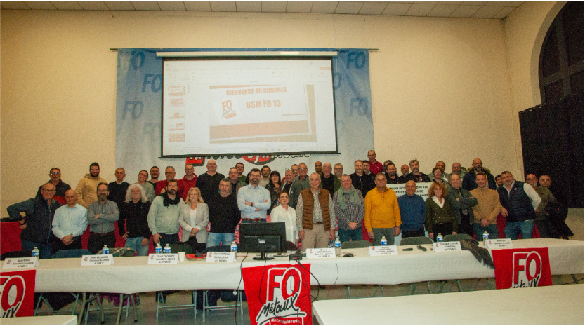 Les métallos FO bucco-rhodaniens se sont retrouvés le 13 janvier à Marseille pour le congrès de leur USM. Rassemblés autour de leur secrétaire Gérard Ciannarella (également secrétaire fédéral), en présence du secrétaire général de la Fédération FO de la métallurgie Valentin Rodriguez et du secrétaire général de l’UD13, Franck Bergamini (dont les locaux accueillait le congrès), et des secrétaires des USM de la région (Alpes-Maritimes, Var, Vaucluse), ils ont mené leurs travaux en marge d’un séminaire de formation sur la retraite progressive animé par Malakoff Humanis.