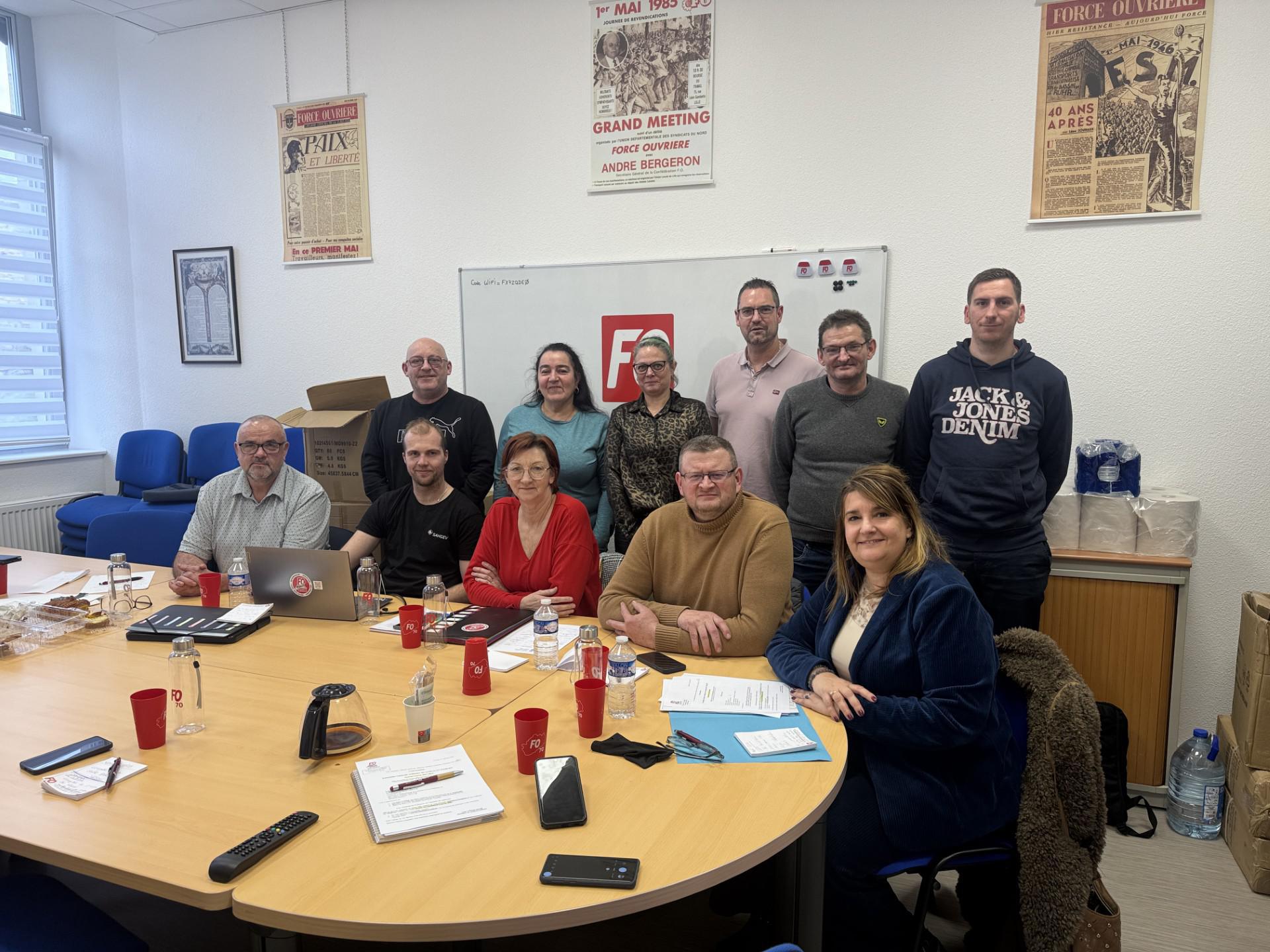 Le 16 janvier, le syndicat SAHGEV a tenu son assemblée générale à Vesoul (Haute-Saône). Rassemblés autour de leur secrétaire Anne Longechamp, en présence de la secrétaire fédérale Géraldine Gomiz, du secrétaire de l’UD70 Sébastien Galmiche, et du secrétaire de l’USM de Haute-Saône Jean-Luc Ballay, les métallos FO ont fait le point sur les nombreux dossiers qui les mobilisent.
